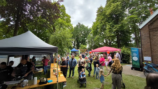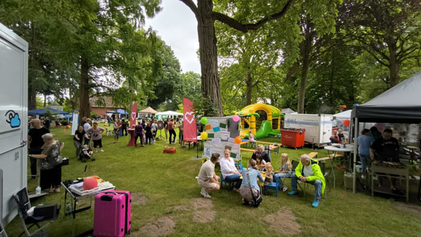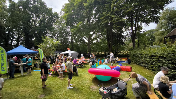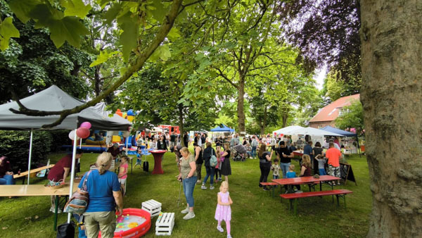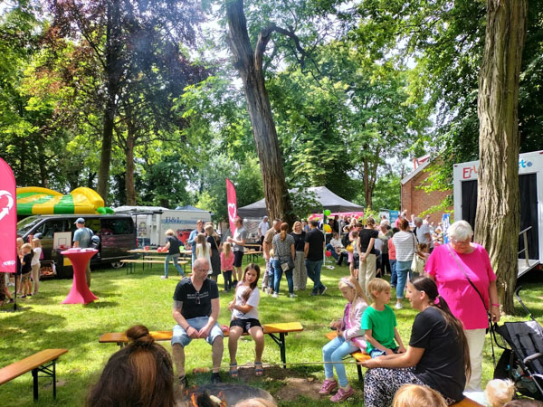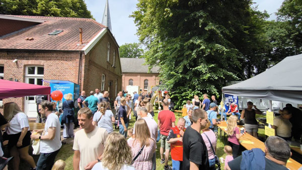 Schon ab 11 Uhr morgens war das Gelände rund um die Kirche in Mittegroßefehn bis zum letzten Fleck gefüllt – und bis 17 Uhr hörte der fröhliche Trubel nicht auf. Überall tummelten sich Kinder, Eltern, Großeltern und Freunde, lachten, tobten und genossen das bunte Programm.